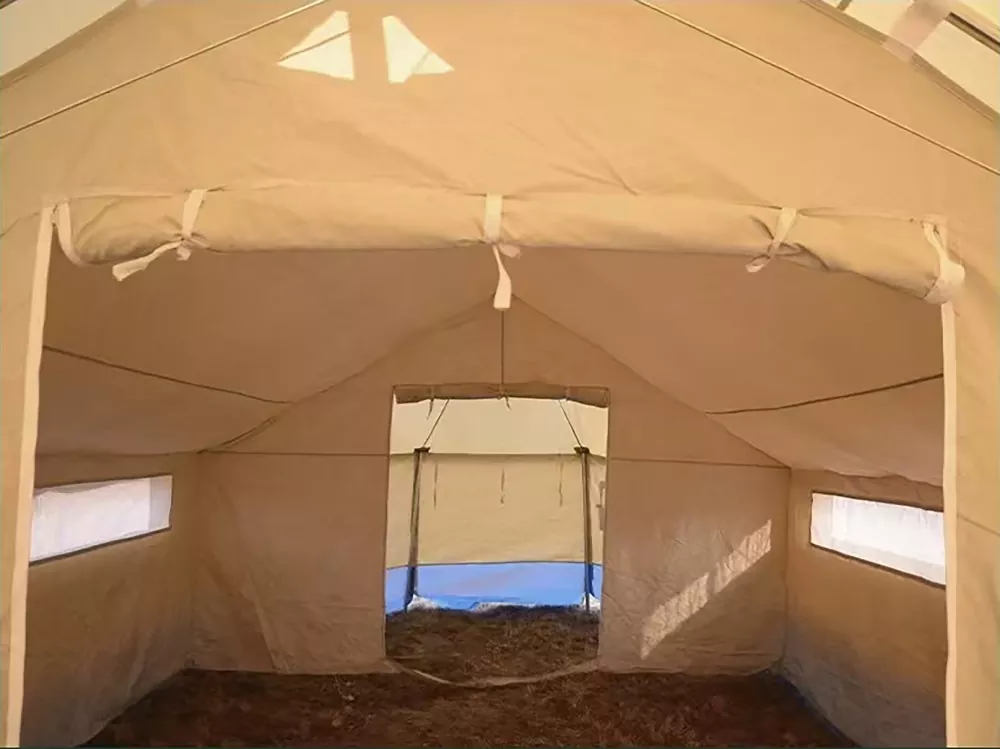 Kwa kawaida hufaa kwa familia za watu 3-5, Hema ya Kimataifa ya Wakimbizi ya Dharura hutoa eneo linaloweza kutumika la takriban mita za mraba 26, na kiwango cha joto cha uendeshaji cha -5℃ hadi 40℃. Hema la nje limetengenezwa kwa nyenzo zisizo na maji, zisizoweza kuwaka moto na zinazostahimili mionzi ya UV; baadhi ya mifano ina vifaa vya insulation, muafaka wa msimu, na zana za ukarabati wa haraka, zinazounga mkono mkusanyiko katika masaa 0.5. Zaidi ya makazi ya kimwili, hema pia hushughulikia mahitaji ya faragha, matibabu, na elimu, ikitumika kama "msingi wa jumuiya zinazotembea" katika migogoro.